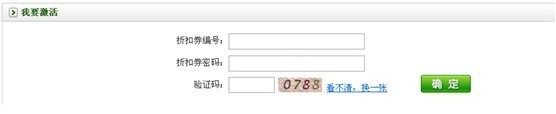 3、 选择“我要激活”一项,使用短信中所显示的卡号、密码激活折扣券。