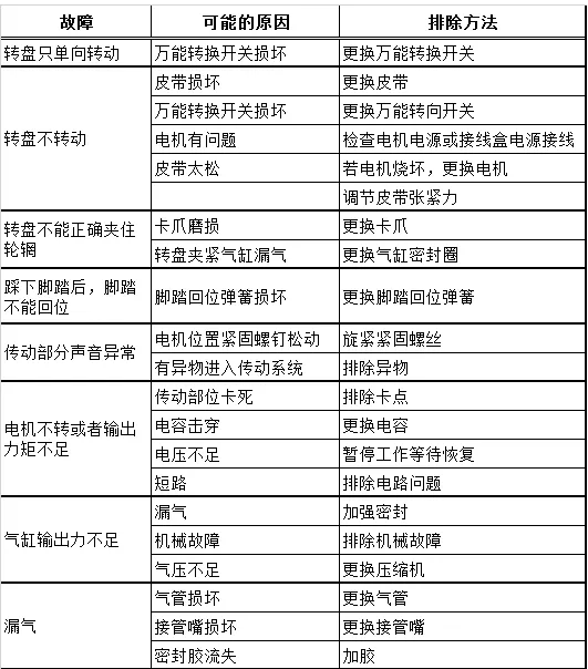 拆胎机常见故障及排除方法:
