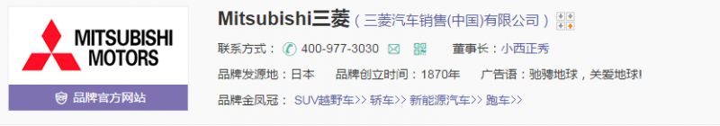始创于1870年日本,1970年三菱汽车公司自三菱重工业公司分离出来,大型跨国汽车制造商