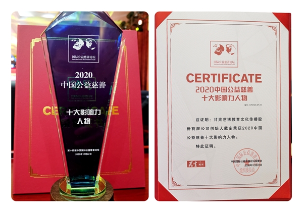 艺博教育创始人戴东老师荣获2020中国公益慈善十大影响力人物