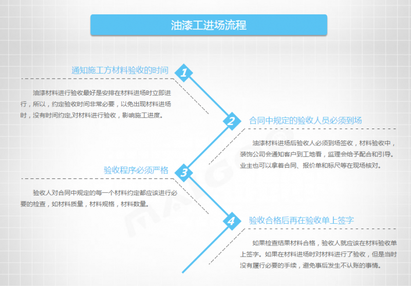 油漆等装修材料的验收是施工前的一个关键,材料质量的好坏很大程度上决定着最终的装修效果,所以油漆工在开始施工之前,材料都会进行进场、验收的阶段,油漆工进场流程是怎样的?油漆工准备材料有哪些?油漆工进场注意事项有哪些?