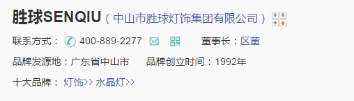 中山市胜球灯饰有限公司是胜球集团始创公司,成立于1992年年5月,坐落在“中国灯饰之都”古镇镇。公司致力于民用,工程灯,商业照明灯饰产品的研发,生产和销售。20年来,经过全体胜球人的共同努力,公司现以发展成为大型灯饰照明企业,拥有在职员工3000余名,10万余平方米的现代化大型工业园,25000平方米的营业展厅。公司拥有独立的研发和营销团队,先后推出伊莎美尔,胜球•senqiu﹑胜球•独特的三大国内知名品牌。公司拥有19家分厂,分别致力于水晶灯系列,吊灯,吸顶灯,壁灯,客房灯,民用台灯,落地灯,厨卫灯,现代灯,节能灯,灯饰配件,包装等产品的研发与生产。产品先后通过了ISO9001,CCC,CE,UL,SASO等 证,销售网络覆盖全国,远销欧美,中东,东南亚,澳大利亚,俄罗斯,日韩等一百多个国家和地区。。