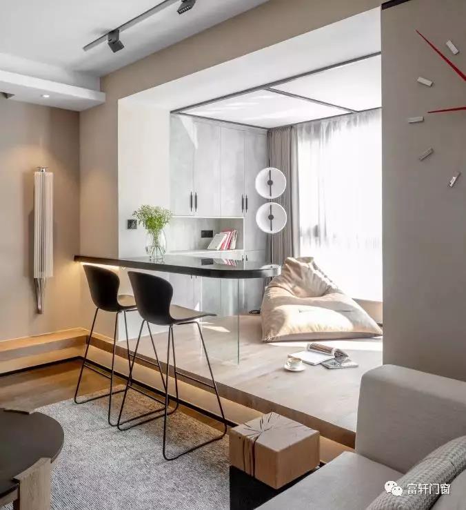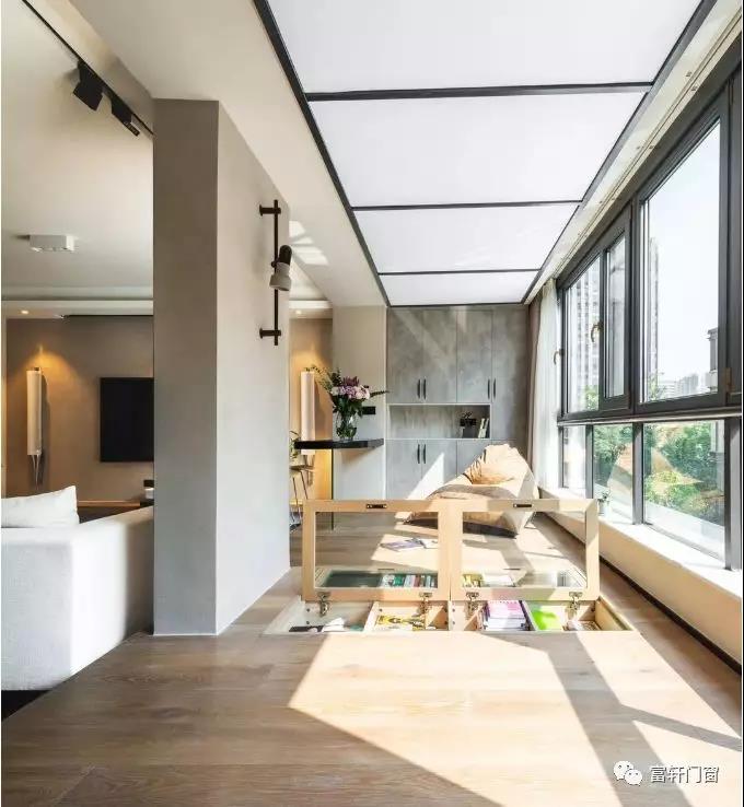 比如老房子原来的空间采光性能偏弱,动线复杂,空间流动性不强。门窗改造要做的就是,引阳光入室内,可以考虑将原有的阳台内置,餐厅、客厅、阳台,互为流动。内置阳台可以作为一个休闲区,用隔热的玻璃门窗封起来,变成一个有阳光又有趣的空间。