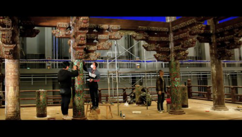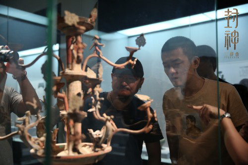 “武王伐纣”的故事发生在商周时期,而《封神演义》则成书于明代,为了能够在这两个时空背景下嫁接出一种原创的美学概念,导演乌尔善带领了主创团队走访了包括殷墟博物馆、青铜器博物馆在内的十所商周历史、文物博物馆和玉皇庙、永乐宫等八处集中展现道教艺术系统的宫观古迹。将这些中国巅峰时期的美学元素进行融合再创造,最终确定以元明道教水陆画作为基础,融合商周青铜器美学元素以及宋人山水,并将其应用于服装造型、场景搭建、道具制作、戏服设计等各个方面,创造出《封神三部曲》独有的美学体系。