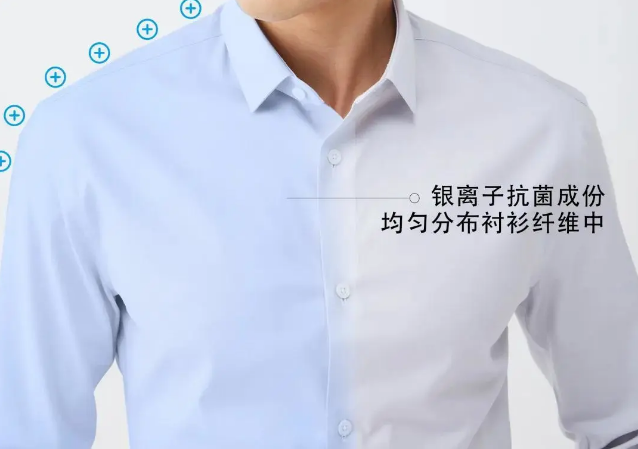 衣邦人抗菌衬衫,采用银离子抗菌技术,将含有纳米银离子的微胶囊嵌入到棉纤维分子中,在使用过程中受摩擦作用缓慢释放纳米银离子使其具有抗菌、杀菌作用,同时还可以使纤维表面附近空气中负离子浓度显著增加,保持衬衫持续清新自然。可有效抑制金黄色葡萄球菌/大肠杆菌/白色念珠菌,抑菌率高可达99.07%,让你的衬衫,时刻保持清洁、清新。