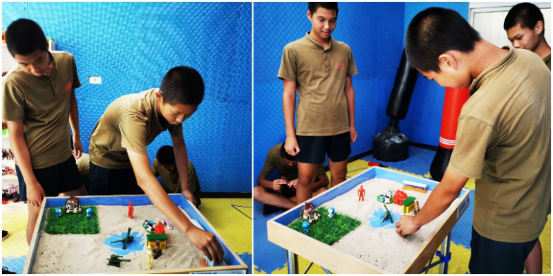 上周在宇凰青少年国学院参与了一次心理老师带领学生进行沙盘游戏的团体课程,这个活动是透过沙盘游戏达到心理治愈的效果,之前只听说过这种心理治疗方法还从未接触过,所以我好奇的来到心理宣泄室一见到沙盘就被深深吸引住了,同行的8名同学也怀着同样的心情期待着这个活动的开始。