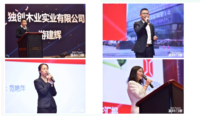 随后,粤之枫负责人余玲英、玉晶/富迪威负责人余经林、独创木业负责人游建辉、富轩怡家负责人梁柏深、富轩门窗代表范艳萍分别上台作述职报告。总结了过去一年工作的收获与困难,同时对2020做出了新的规划和奋斗目标,新的一年,我们继续拼搏向前!