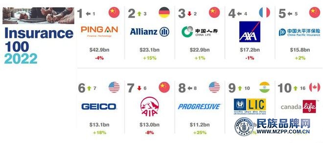 2022年全球保险品牌价值100强排名