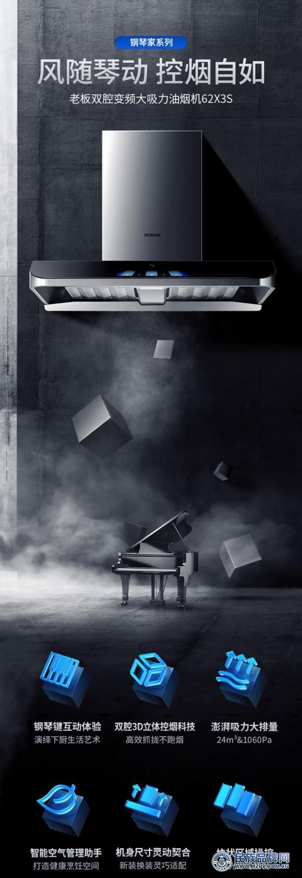 电视萤幕中度可信度描述已自动生成老板电器生产的油烟机在厨房用品中称得上是"元老"地位,一直以良好的性能、出色的外观受到广大用户的好评。近期,老板电器又推出了一款变频双腔钢琴家油烟机62X3S,这款全新产品还入选了天猫TOP100趋势新品。