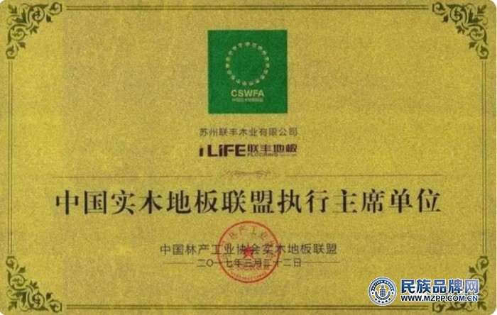 连地板荣获多项荣誉。联丰荣获众多荣誉:十佳地板品牌、江苏省著名品牌、环境标志认证优秀企业、环保地板品牌、林业产业创新奖、未来地板领军奖、十佳地板科技创新品牌、森林认证企业、木业百强企业、国家标准化示范企业等。